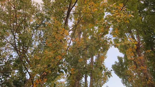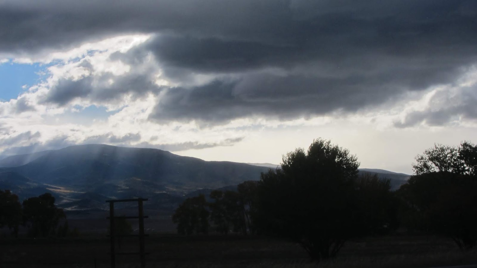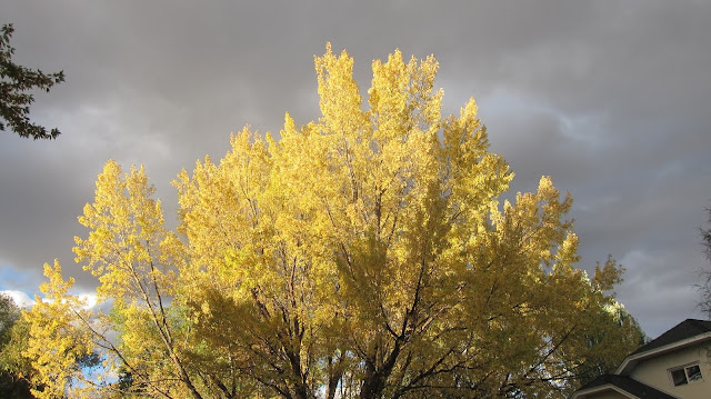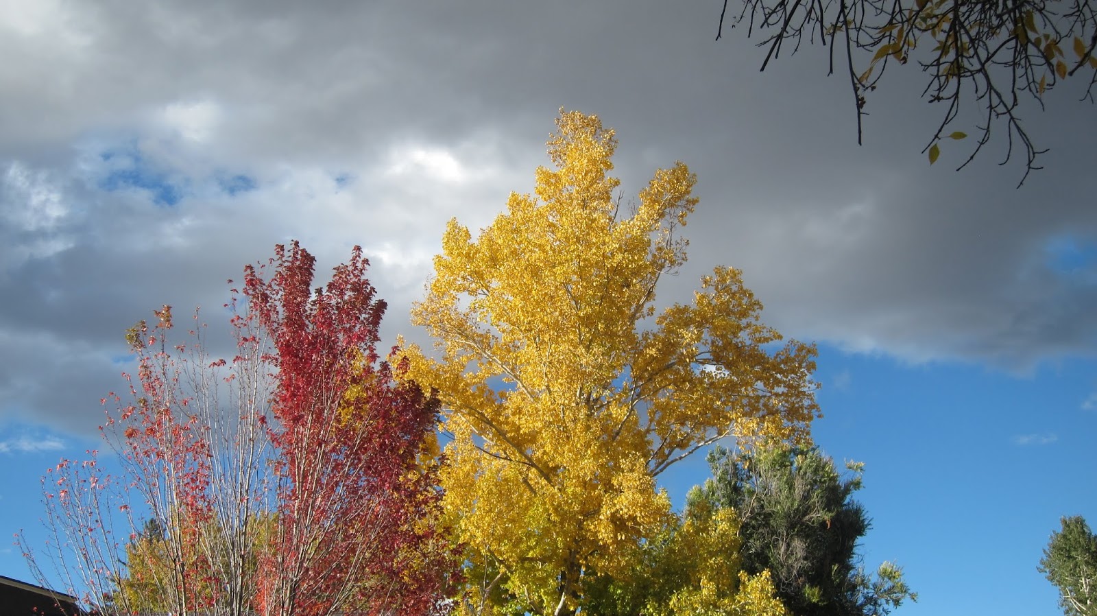 In A.D. 2018, the autumn pattern in our patch of the San Luis Valley is broken cloud cover, with wind in the afternoon. It’s yet to get bitterly cold (below 20°F/-6.6°C), although it has gotten cold enough to turn the gold leaves on our aspen to deep red and black, while also rusting the leaves of the tall Lombardy poplars.